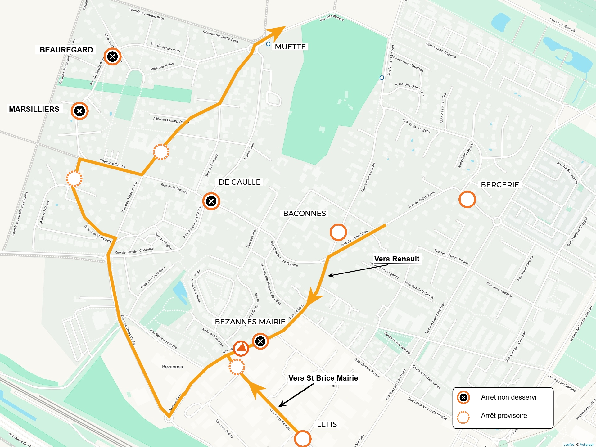 04 L'arrêt REPUBLIQUE dans le sens ORGEVAL est reporté à l'arrêt SCHNEITER de la SUB