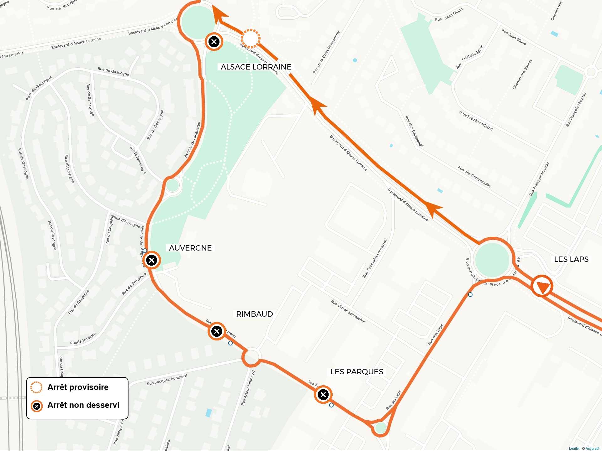 02 L'arrêt RIMBAUD dans le sens GARE CENTRE est reporté à l'arrêt LAPS