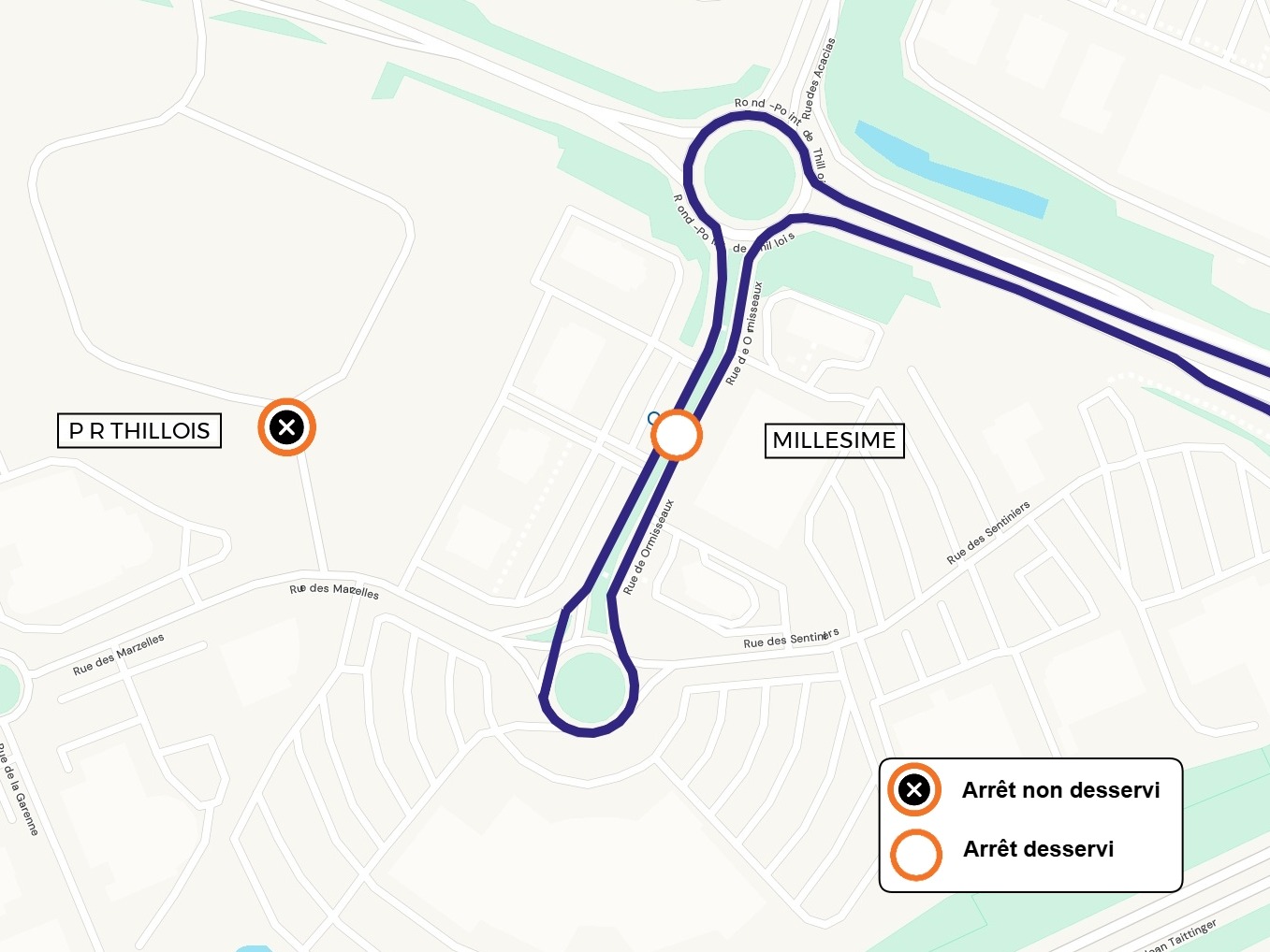 | L'arrêt P+R THILLOIS est reporté à l'arrêt MILLESIME |