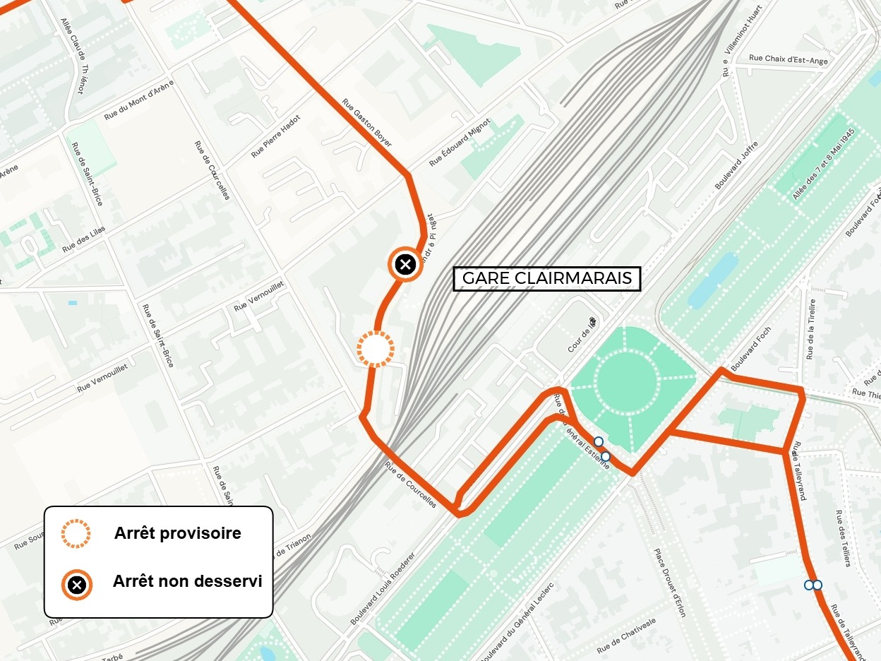 | L'arrêt GARE CLAIRMARAIS dans le sens MOULIN DE LA HOUSSE est déplacé 100 mètres après l'arrêt, au 5 rue André Pingat |