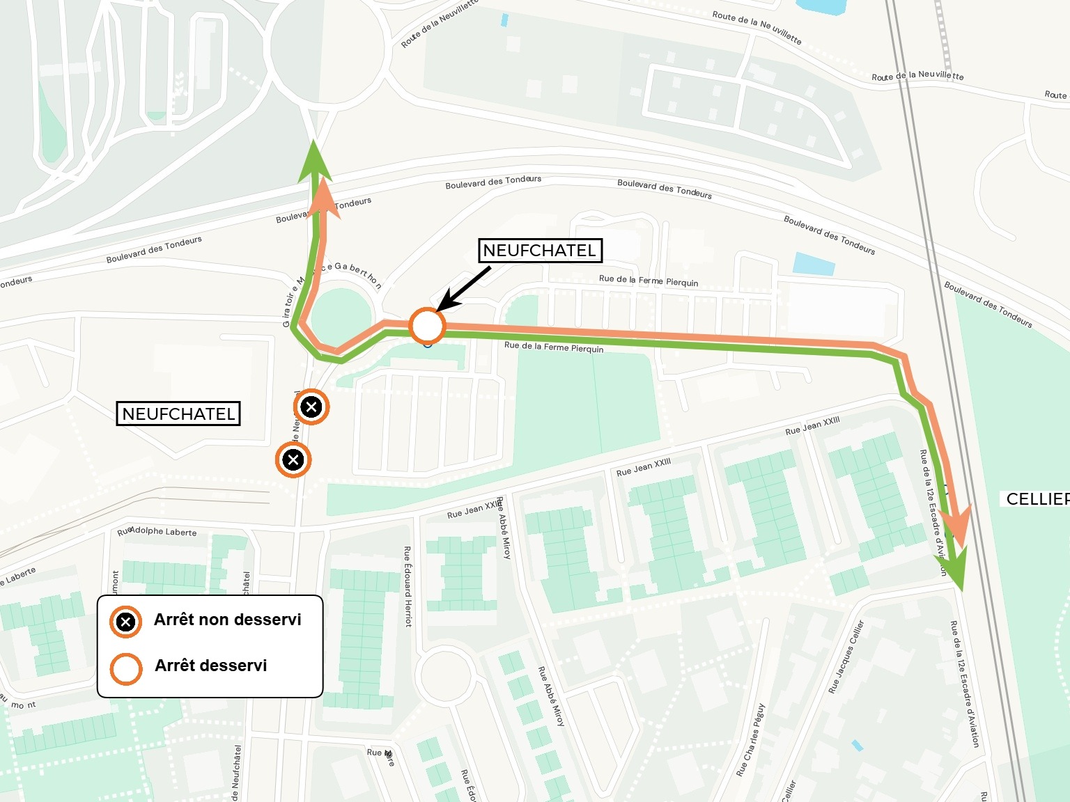 U4U22 Les arrêts NEUFCHATEL dans les deux sens sont déplacés rue de la Ferme Pierquin, au niveau du P+R Neufchâtel