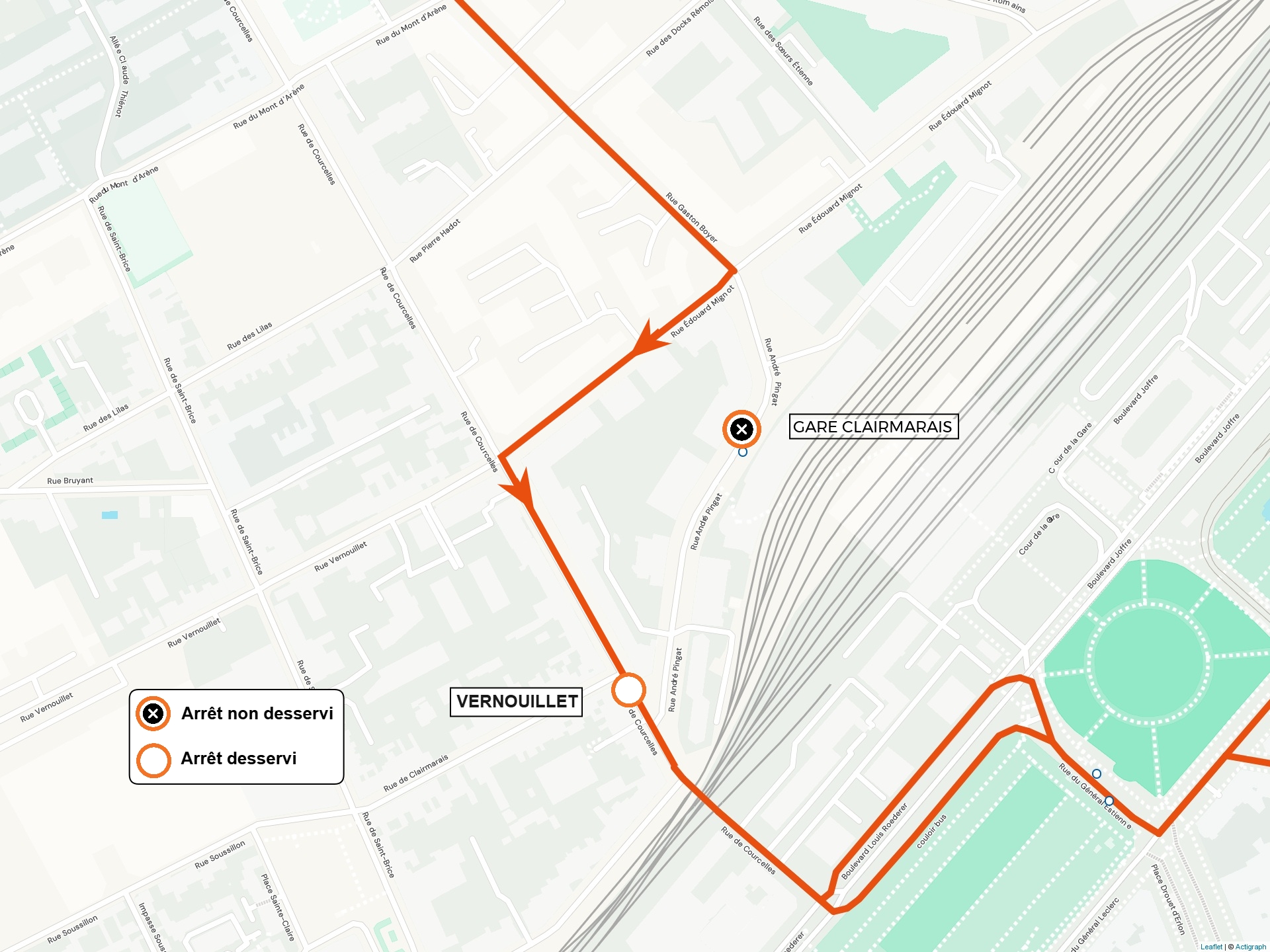 | L'arrêt GARE CLAIRMARAIS dans le sens MOULIN DE LA HOUSSE est déplacé 100 mètres après l'arrêt, au 5 rue André Pingat |