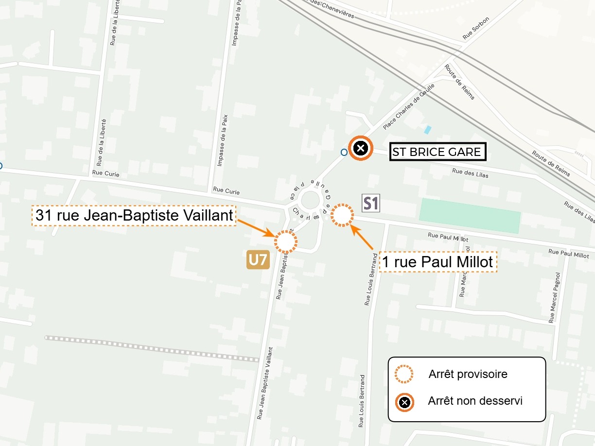 L'arrêt ST BRICE GARE dans le sens COLLEGE TROIS FONTAINES est déplacé au niveau du  1 rue Paul Millot